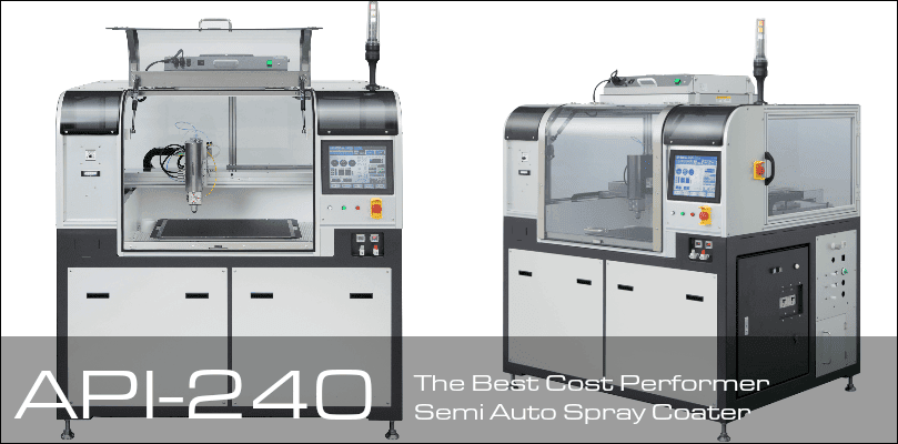 Apeiros API-240, Semi-Auto Spray Coater. Used for mass production and research and development. AS, AR, AG, OGS, OLED, and Fuel Cell.
